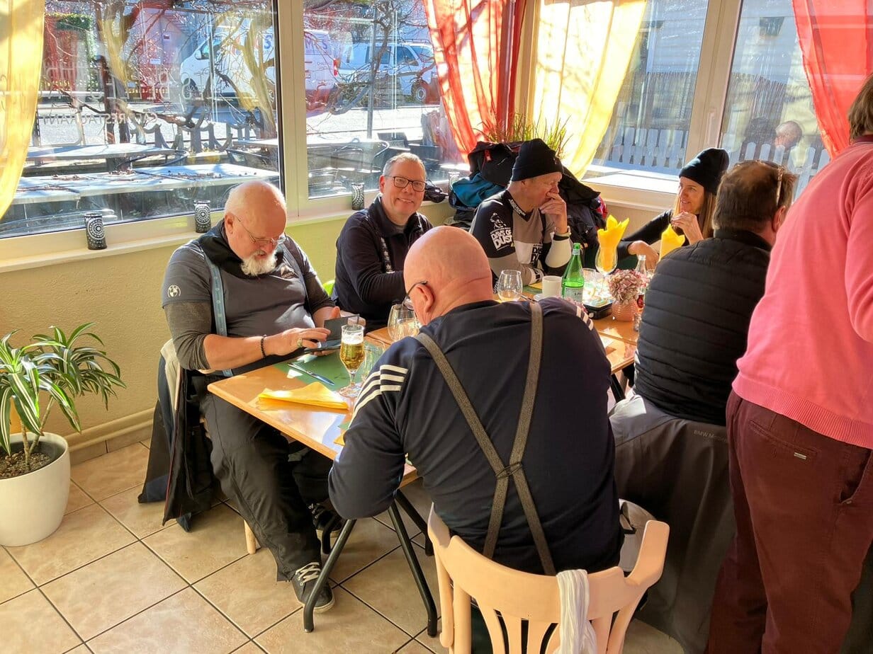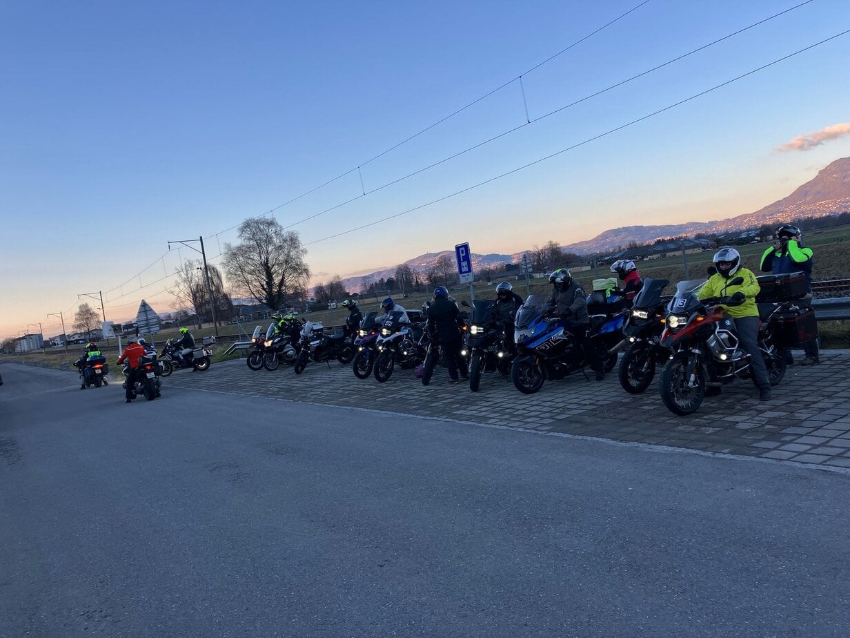 21 participants et 18 motos étaient sur la ligne de départ à la station ENI dès 8h45 du matin où le chef de file Christophe EBERLIN les accueillait pour un petit café avant de démarrer sur le Tour du Lac.